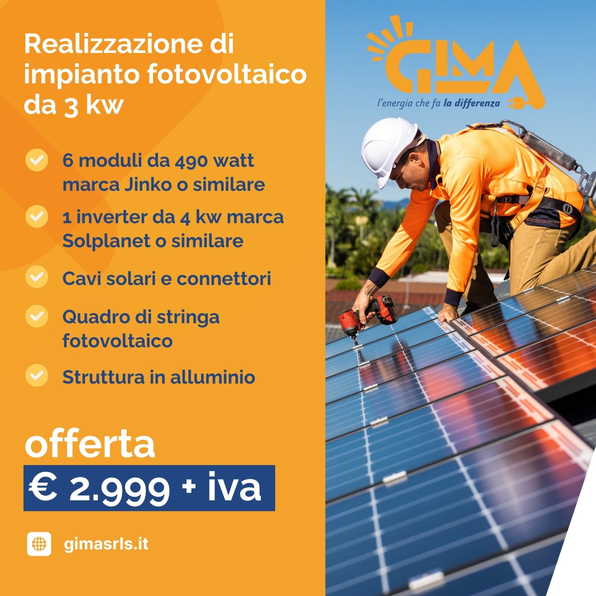 - 6 moduli da 490 watt marca Jinko o similare. I moduli Jinko Tiger Neo proposti sono prodotti di alta qualità e garantiscono un'efficienza superiore al 21.5% oltre che un’elevata garanzia (15 anni sul prodotto e 30 anni sulla produzione garantita).