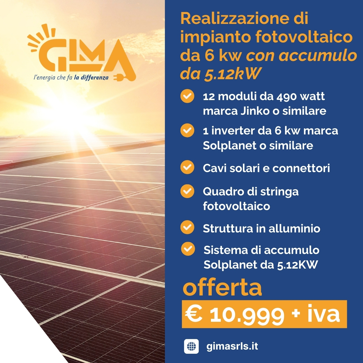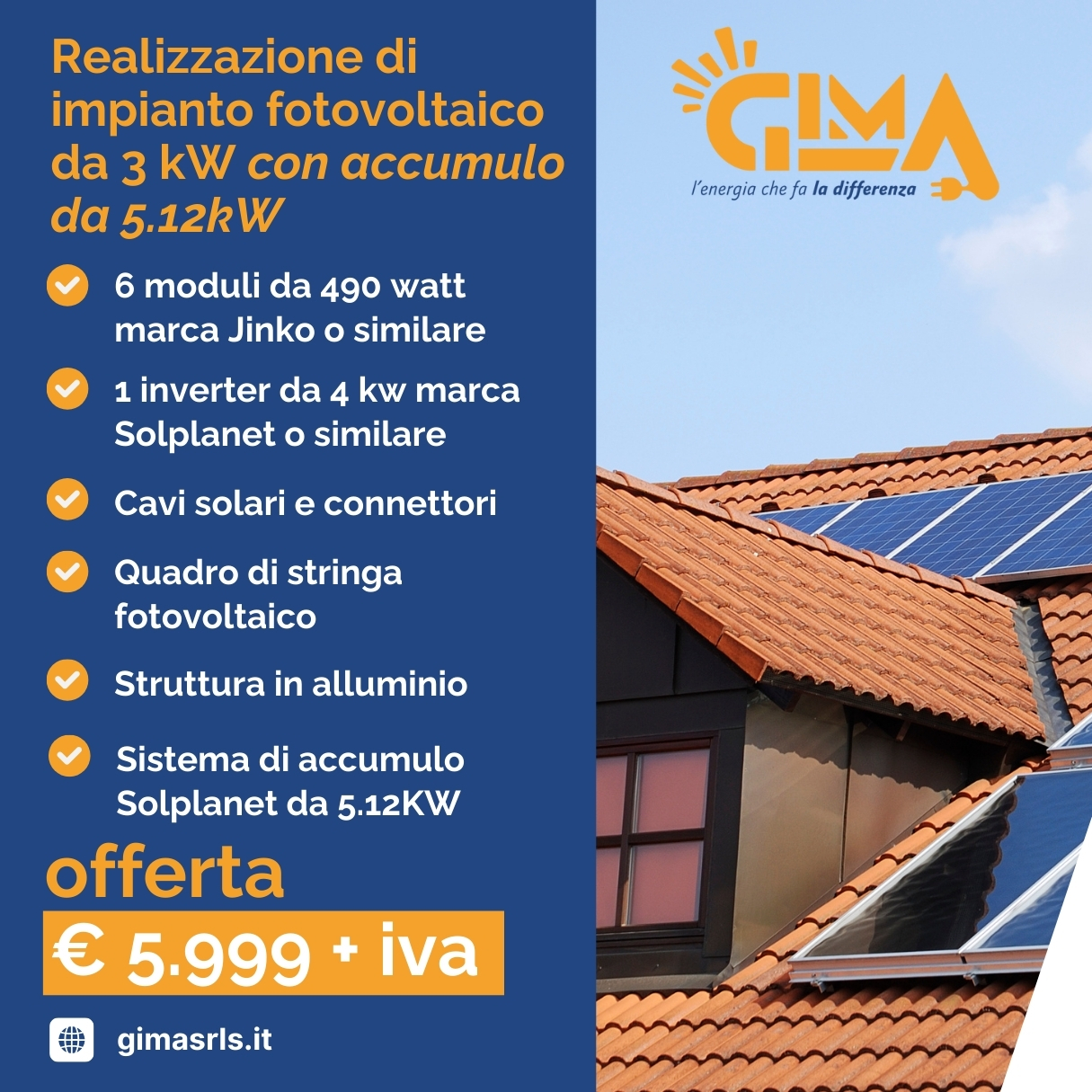 Impianto fotovoltaico da 3 kW con accumulo da 5.12kW