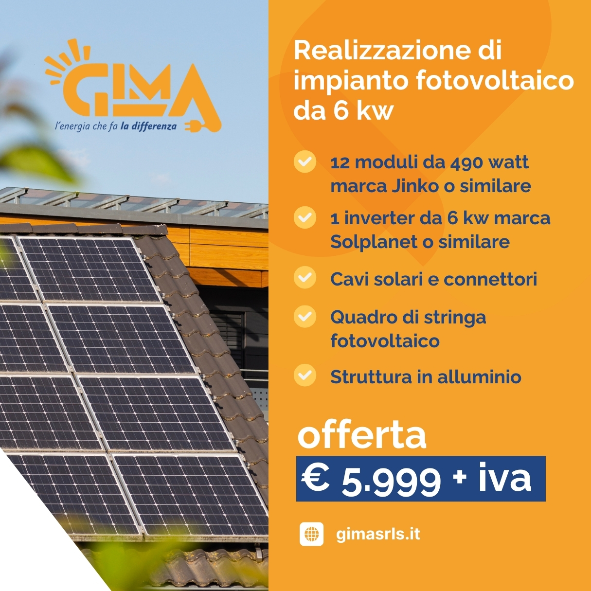 - 1 inverter da 6 kW marca Solplanet o similare. Gli inverter sono gli elementi che convertono l'energia elettrica prodotta dai moduli fotovoltaici in corrente alternata, la forma di corrente utilizzata dalla rete elettrica.